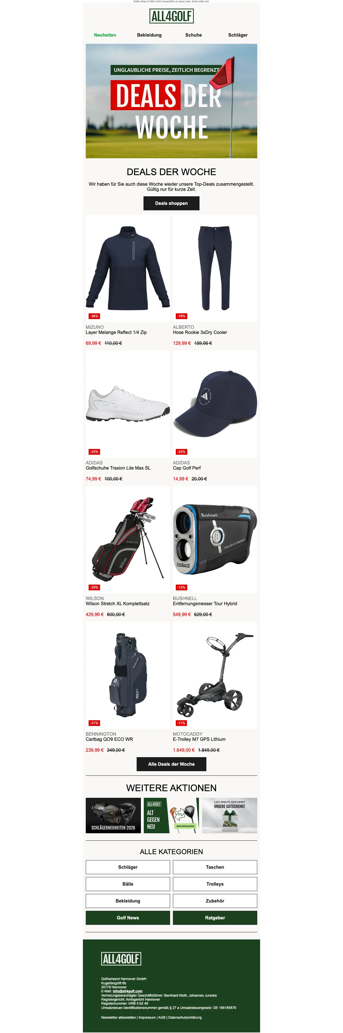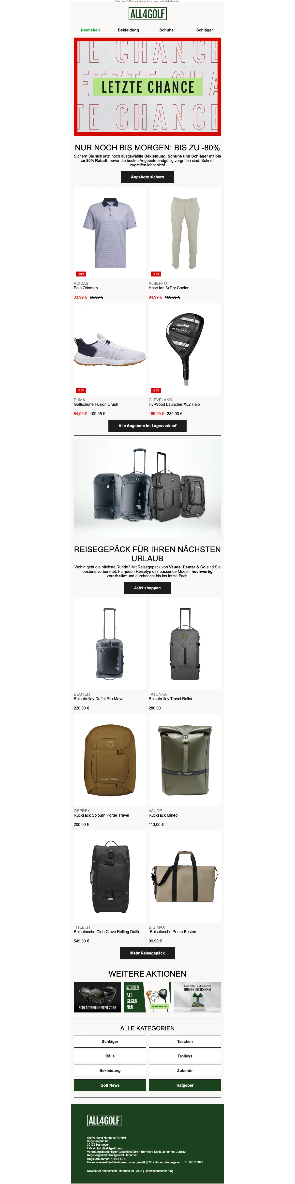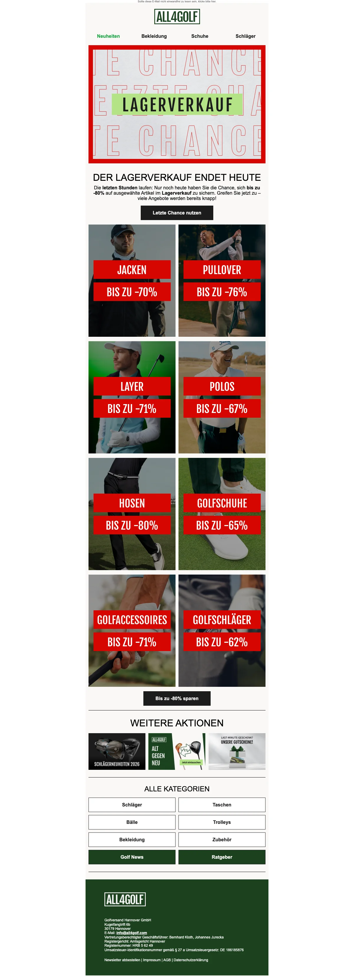 All4Golf Lagerverkauf bis zu -80% auf ausgewählte Artikel — letzte Chance