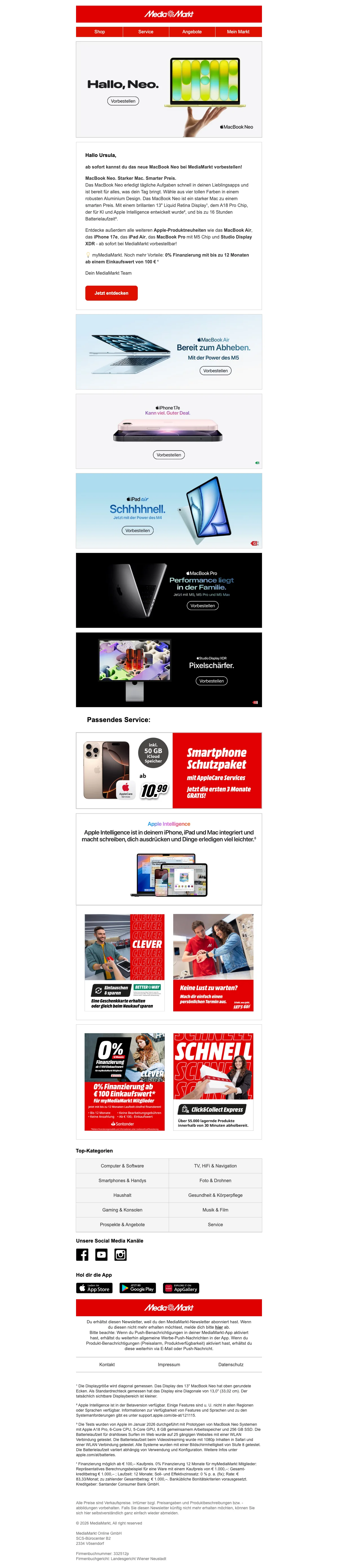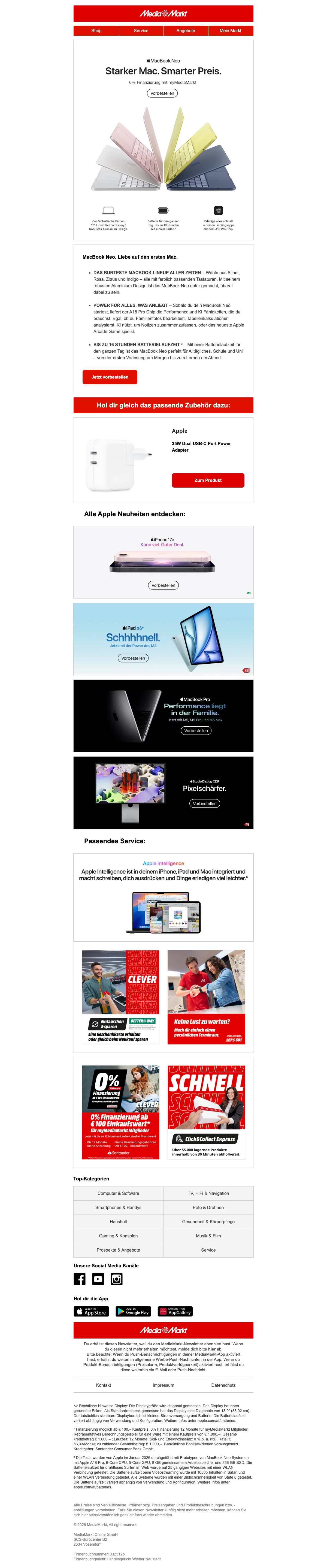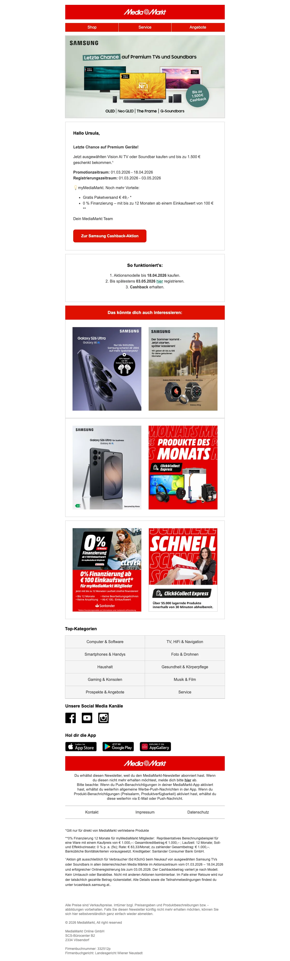 MediaMarkt Aktionscode Österreich: € 10.- bei Newsletteranmeldung sichern