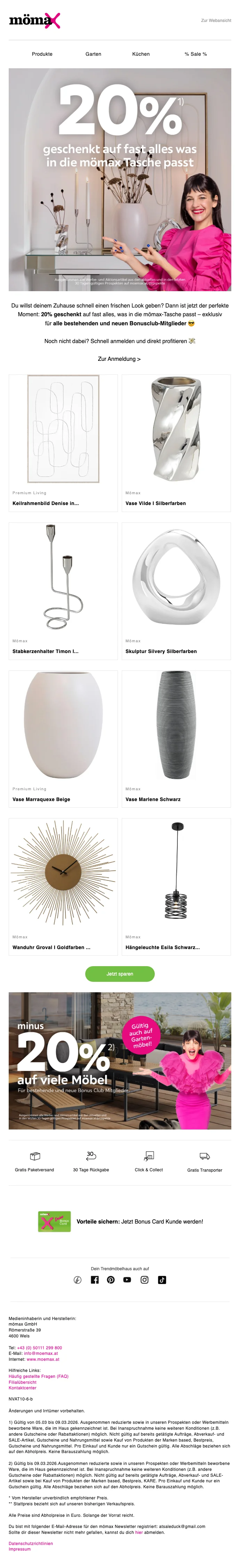 mömax Newsletter Aktion 10 € Gutschein ab 25 € MBW